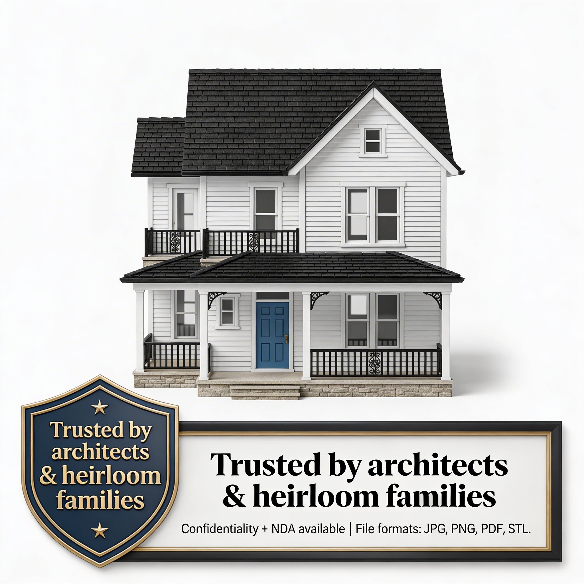 We ordered the Heritage Series for my mother who just moved into assisted living. When she held the model of her house — the one she raised us in for 40 years — she just started crying. She keeps it on her nightstand now. The detail is incredible, right down to the flower boxes on the porch.